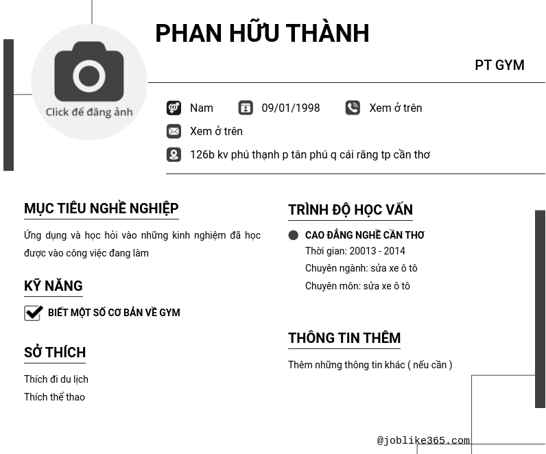 Xem hồ sơ ứng viên Phan hữu thành cần 2 điểm. Hồ sơ được cập nhật ngày: 04/09/2024