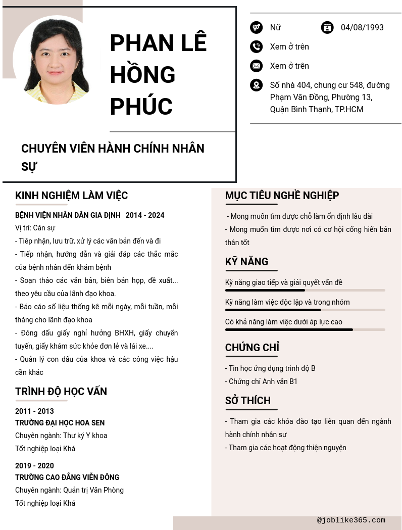 Xem hồ sơ ứng viên PHAN LÊ HỒNG PHÚC cần 2 điểm. Hồ sơ được cập nhật ngày: 21/12/2024