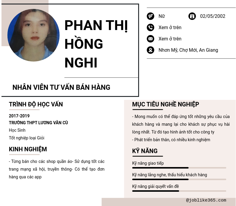 Xem hồ sơ ứng viên Phan Thị Hồng Nghi cần 2 điểm. Hồ sơ được cập nhật ngày: 09/09/2024