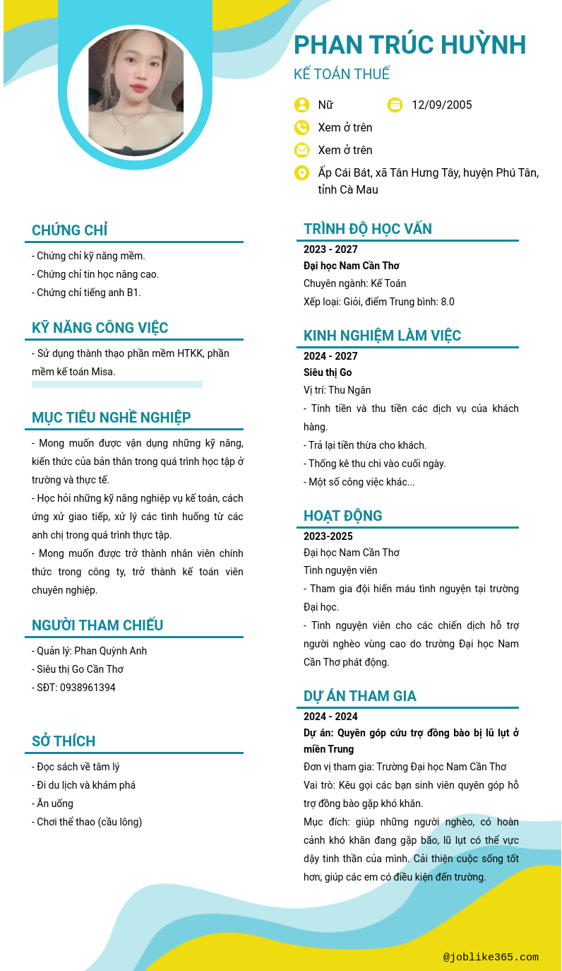 Xem hồ sơ ứng viên phan trúc huỳnh cần 2 điểm. Hồ sơ được cập nhật ngày: 02/11/2024