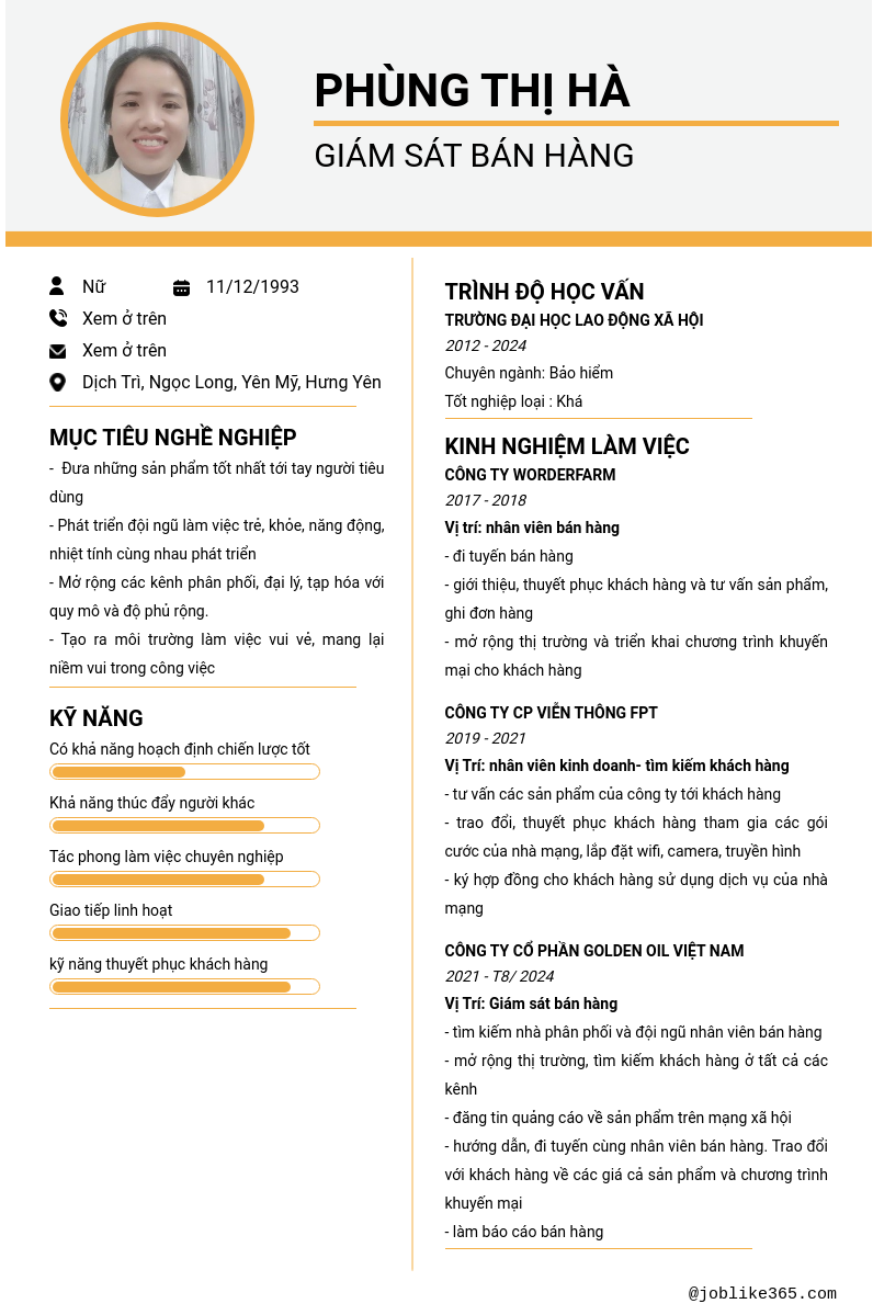 Xem hồ sơ ứng viên Phùng Thị Hà cần 2 điểm. Hồ sơ được cập nhật ngày: 23/10/2024