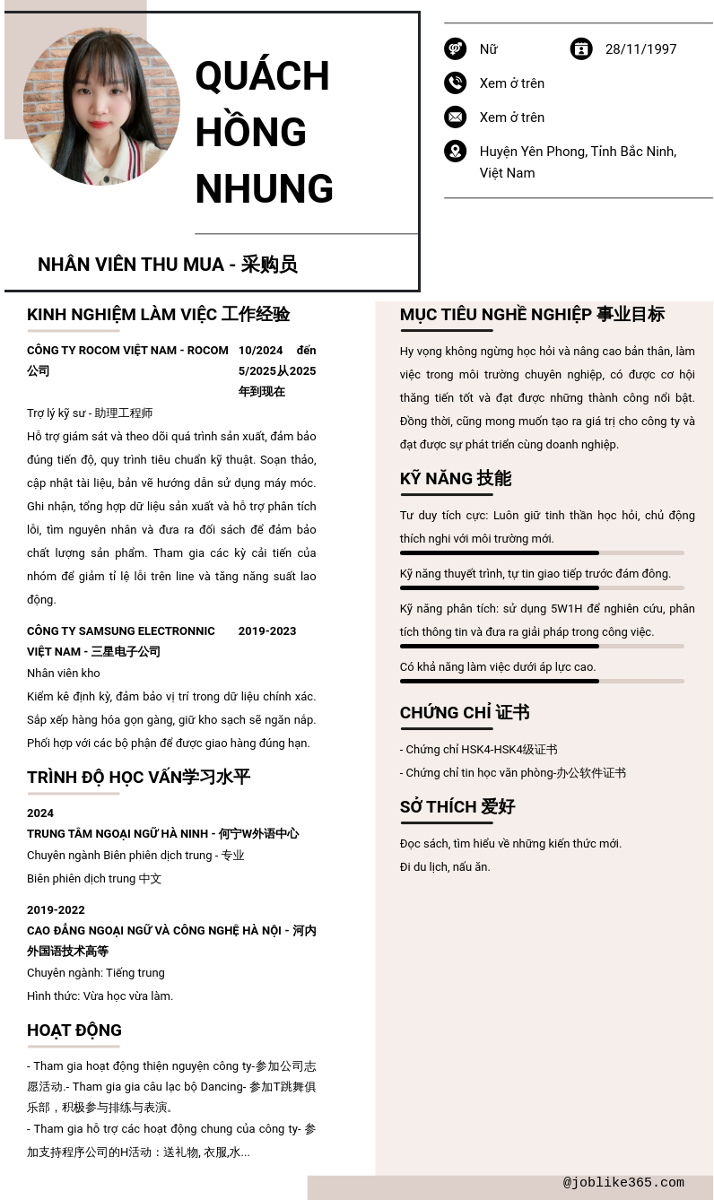Nhân viên thu mua - 采购员
