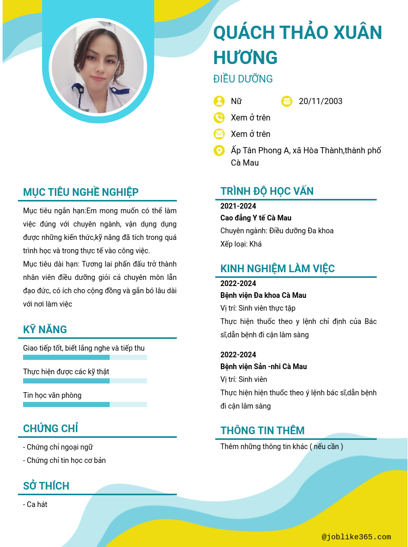 Xem hồ sơ ứng viên QUÁCH THẢO XUÂN HƯƠNG cần 2 điểm. Hồ sơ được cập nhật ngày: 15/10/2024