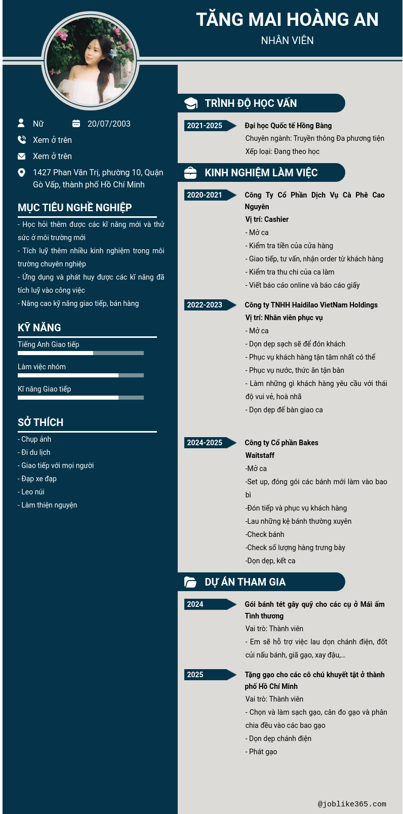 Xem hồ sơ ứng viên TĂNG MAI HOÀNG AN cần 2 điểm. Hồ sơ được cập nhật ngày: 28/02/2026
