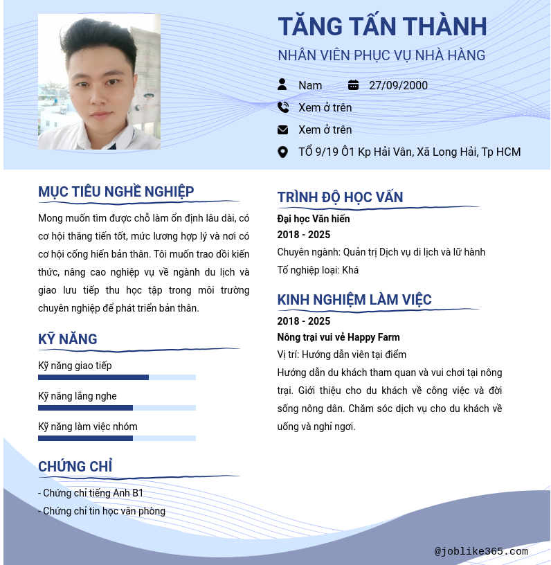 Xem hồ sơ ứng viên TĂNG TẤN THÀNH cần 2 điểm. Hồ sơ được cập nhật ngày: 13/12/2025