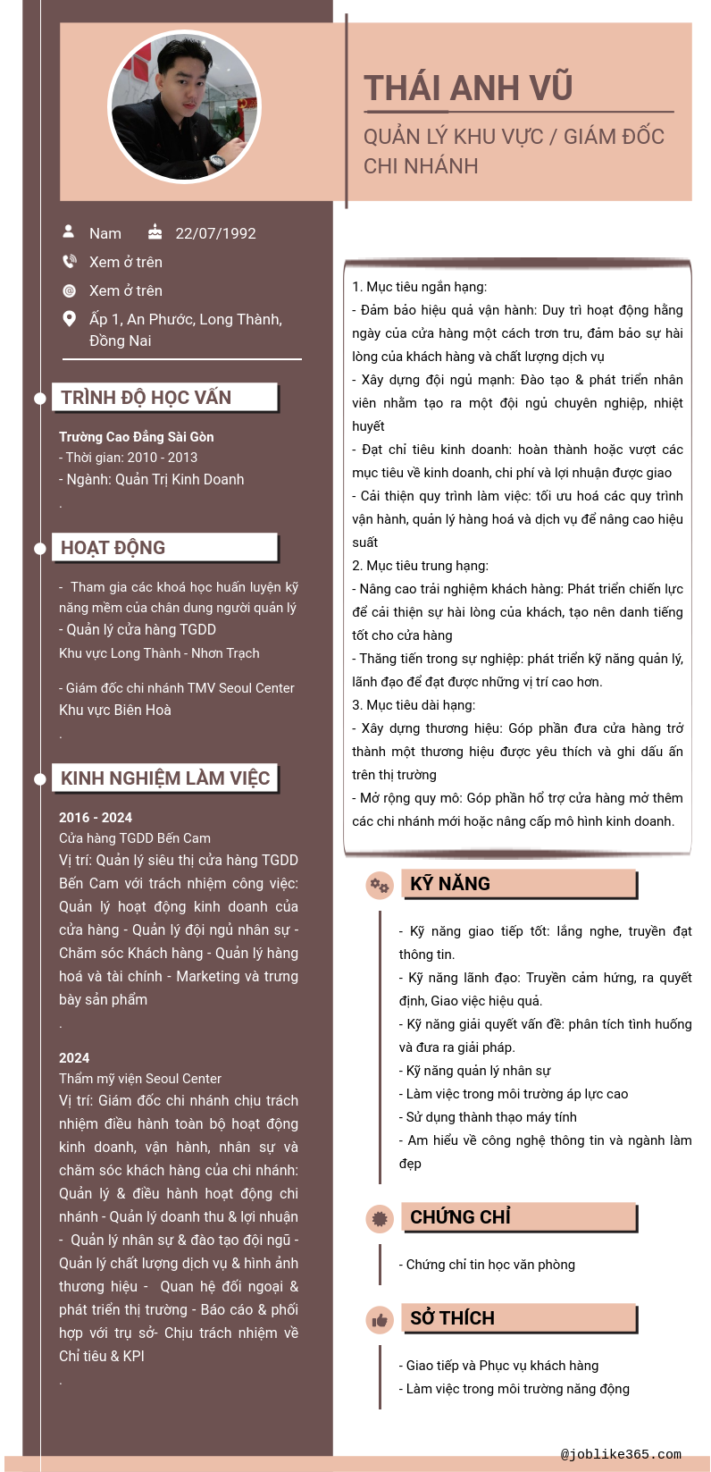 Xem hồ sơ ứng viên TháI ANH VŨ cần 2 điểm. Hồ sơ được cập nhật ngày: 31/10/2025