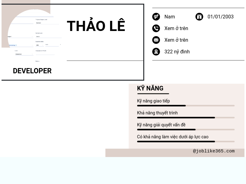 Xem hồ sơ ứng viên thảo lê cần 2 điểm. Hồ sơ được cập nhật ngày: 29/10/2025