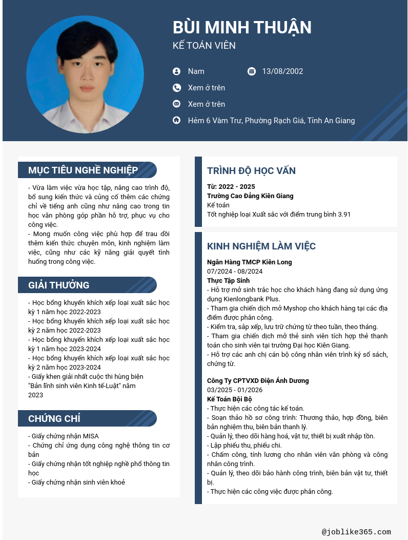 Xem hồ sơ ứng viên Bùi Minh Thuận cần 2 điểm. Hồ sơ được cập nhật ngày: 11/02/2026