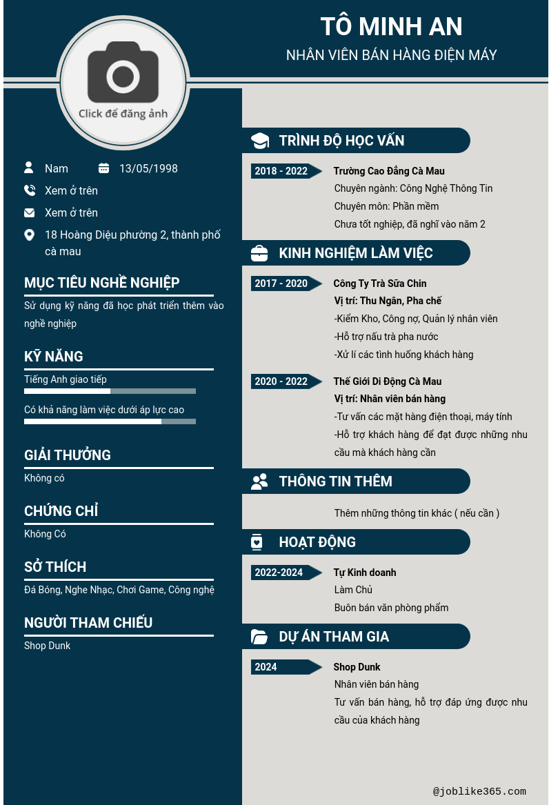 Xem hồ sơ ứng viên Tô Minh an cần 2 điểm. Hồ sơ được cập nhật ngày: 15/12/2024