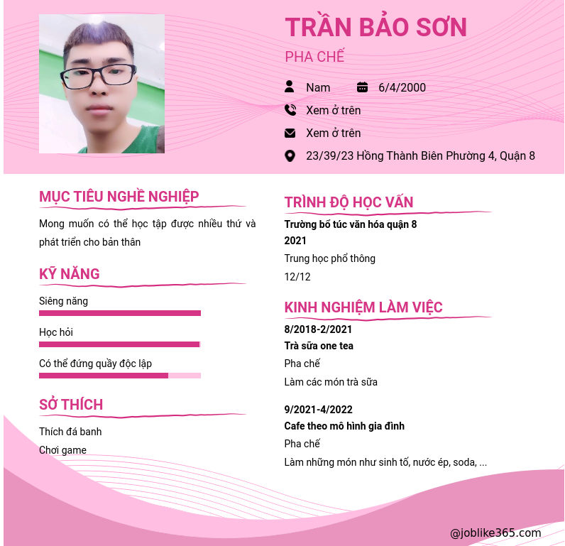 Xem hồ sơ ứng viên TRẦN BẢO SƠN cần 2 điểm. Hồ sơ được cập nhật ngày: 25/05/2024