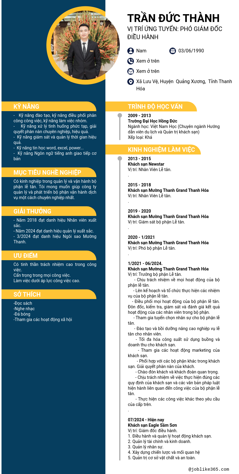 Xem hồ sơ ứng viên TRẦN ĐỨC THÀNH cần 2 điểm. Hồ sơ được cập nhật ngày: 24/11/2025
