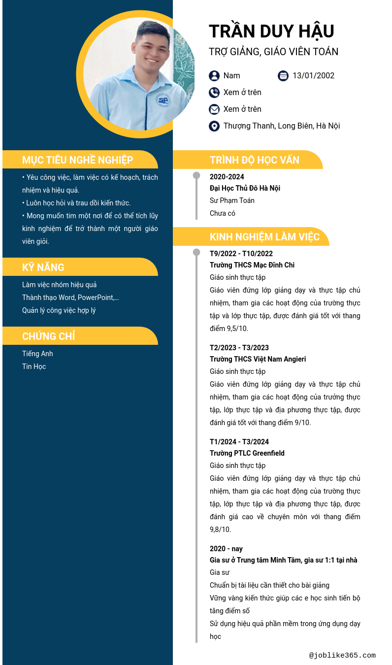 Xem hồ sơ ứng viên TRẦN DUY HẬU cần 2 điểm. Hồ sơ được cập nhật ngày: 24/05/2024