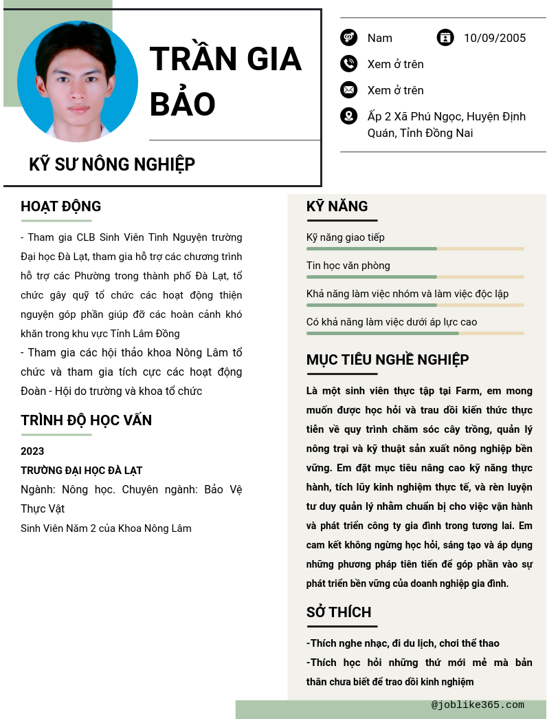 Xem hồ sơ ứng viên Trần gia bảo cần 2 điểm. Hồ sơ được cập nhật ngày: 17/04/2025