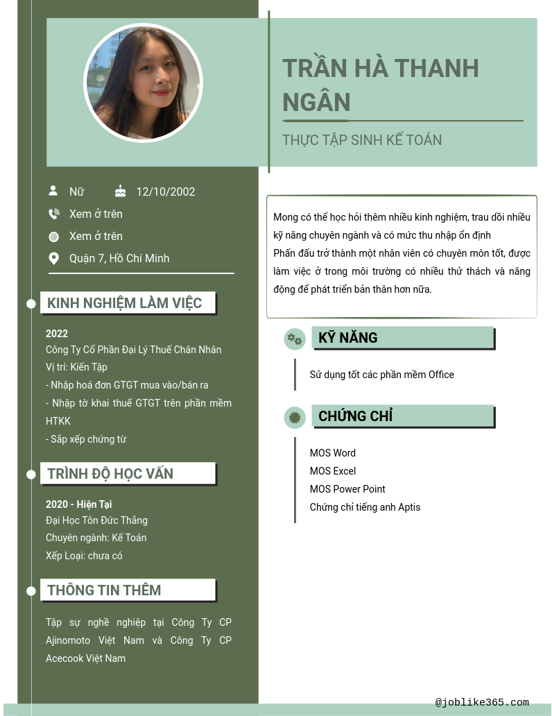 Xem hồ sơ ứng viên Trần Hà Thanh Ngân cần 2 điểm. Hồ sơ được cập nhật ngày: 26/05/2025