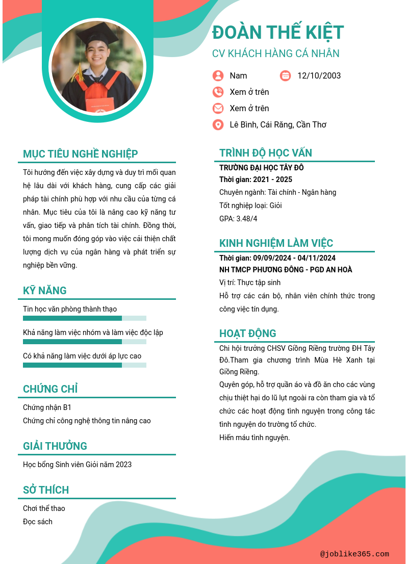 Xem hồ sơ ứng viên ĐOÀN THẾ KIỆT cần 2 điểm. Hồ sơ được cập nhật ngày: 20/08/2025