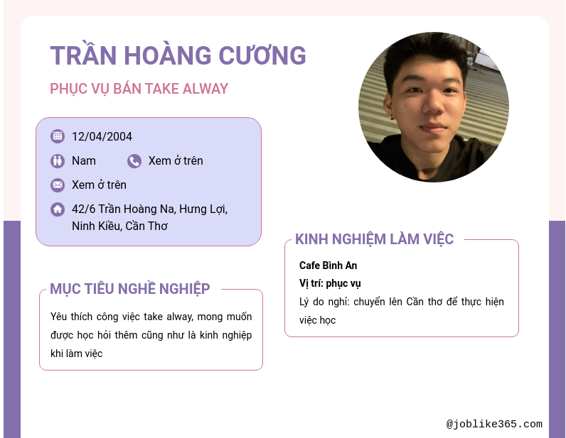 Xem hồ sơ ứng viên Trần Hoàng Cương cần 2 điểm. Hồ sơ được cập nhật ngày: 18/08/2025
