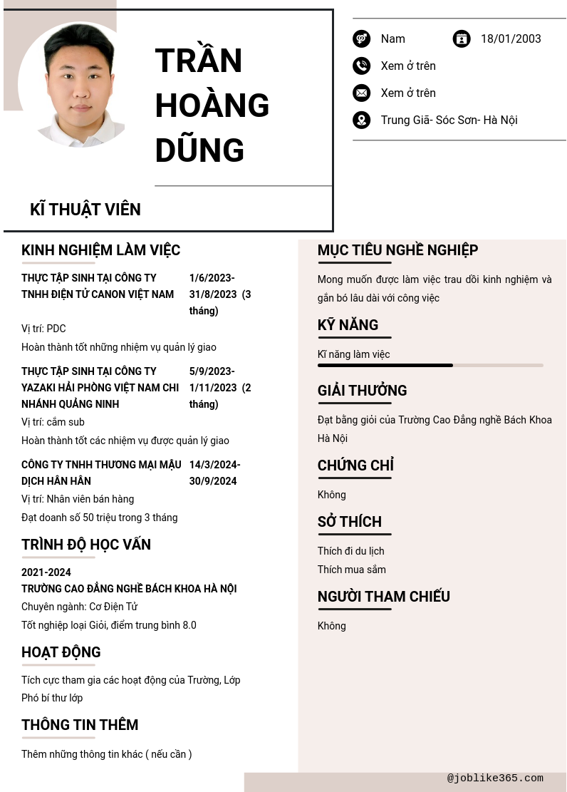 Xem hồ sơ ứng viên Trần Hoàng Dũng cần 2 điểm. Hồ sơ được cập nhật ngày: 30/09/2024