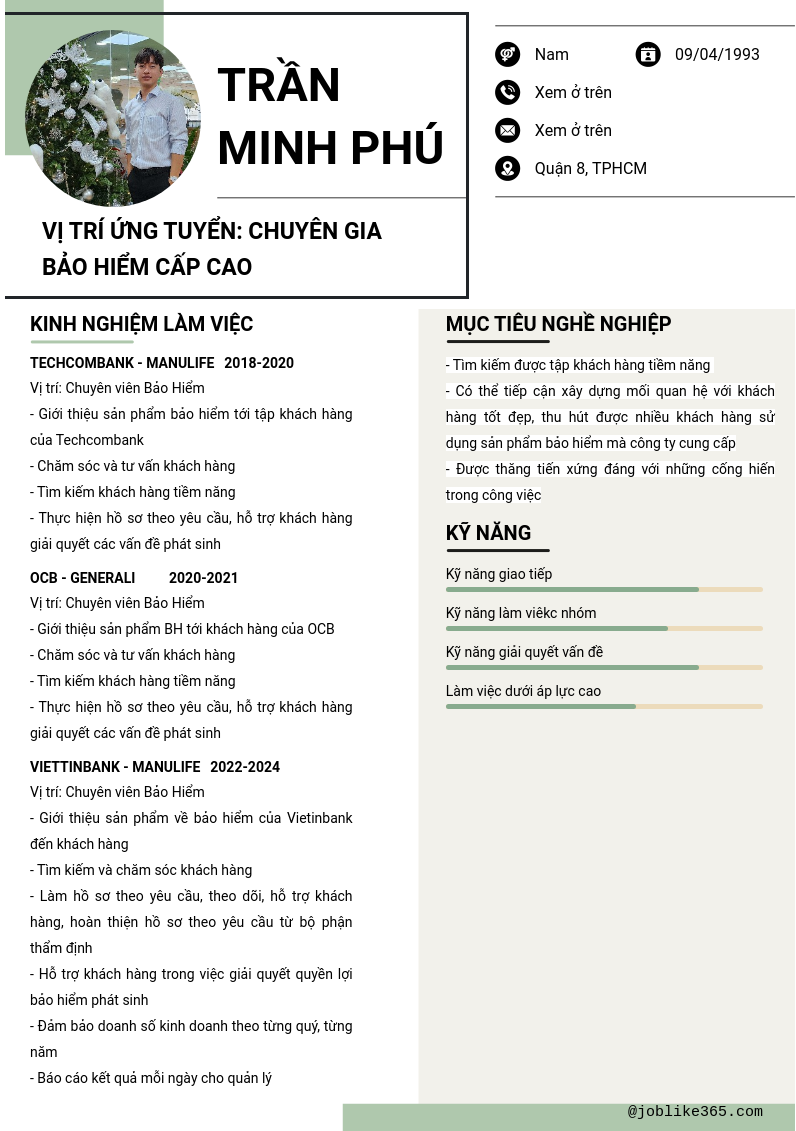 Xem hồ sơ ứng viên Trần Minh Phú cần 2 điểm. Hồ sơ được cập nhật ngày: 26/02/2025