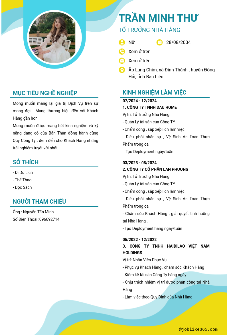 Xem hồ sơ ứng viên Trần minh thư cần 2 điểm. Hồ sơ được cập nhật ngày: 18/12/2024