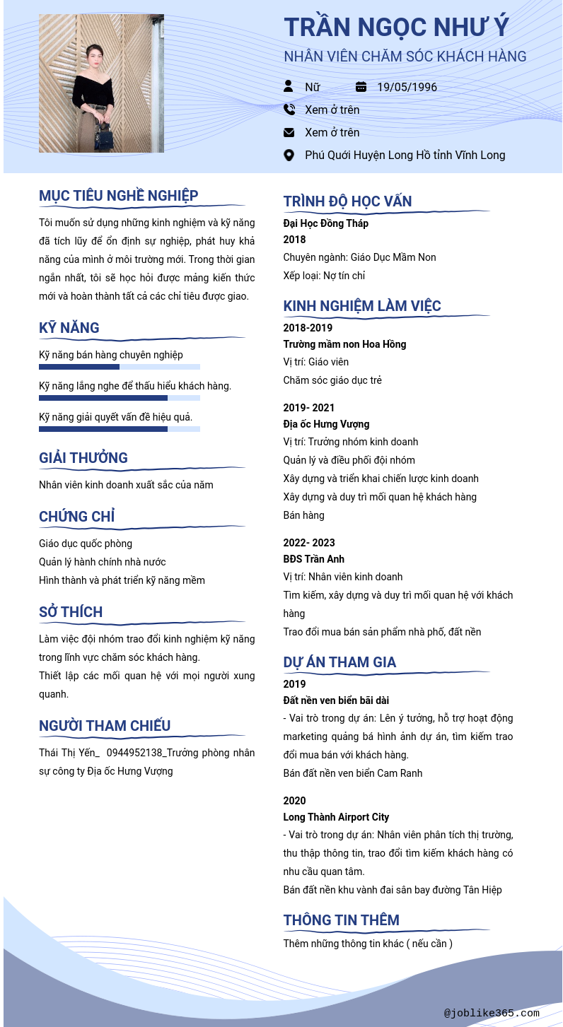 Xem hồ sơ ứng viên Trần Ngọc Như Ý cần 2 điểm. Hồ sơ được cập nhật ngày: 19/08/2024