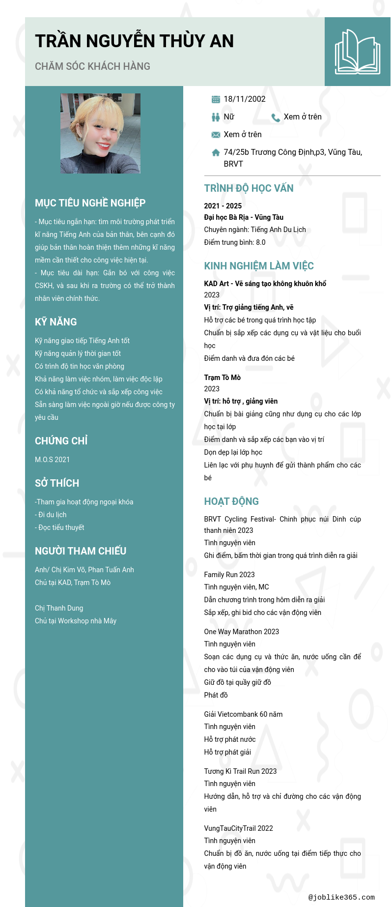 Xem hồ sơ ứng viên Trần Nguyễn Thùy An cần 2 điểm. Hồ sơ được cập nhật ngày: 26/08/2024