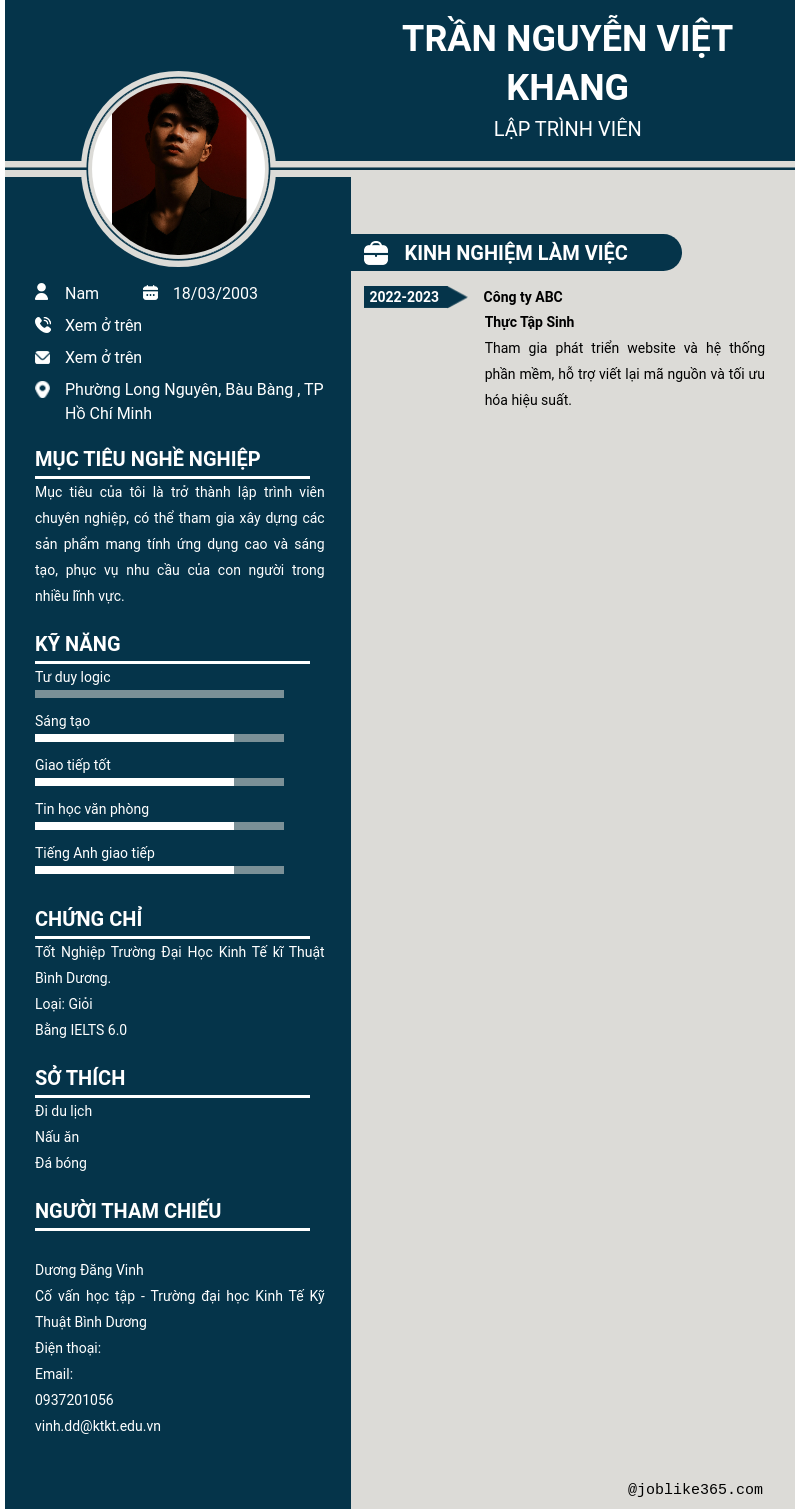 Xem hồ sơ ứng viên TRẦN NGUYỄN VIỆT KHANG cần 2 điểm. Hồ sơ được cập nhật ngày: 08/10/2025