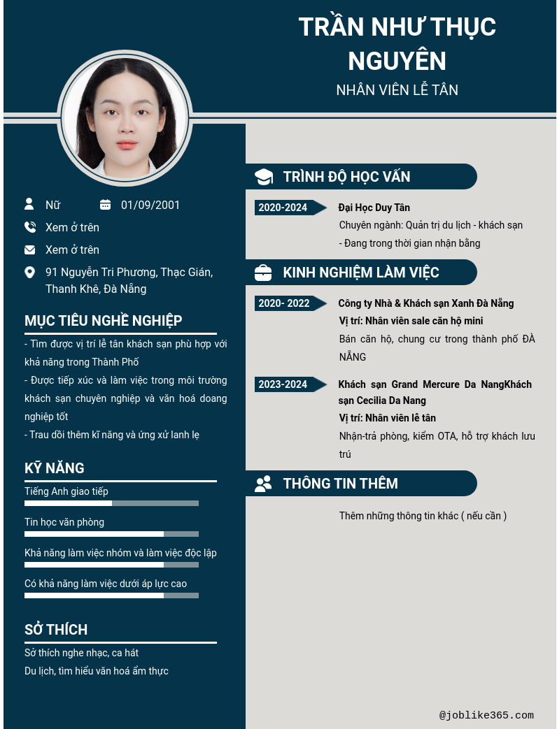 Xem hồ sơ ứng viên Trần Như Thục Nguyên cần 2 điểm. Hồ sơ được cập nhật ngày: 06/01/2025
