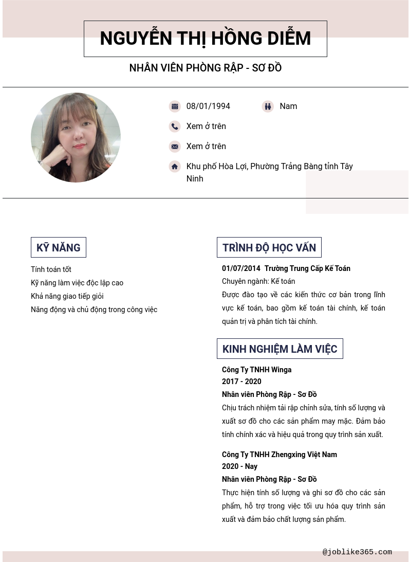 Xem hồ sơ ứng viên nguyễn thị hồng diễm cần 2 điểm. Hồ sơ được cập nhật ngày: 22/08/2025