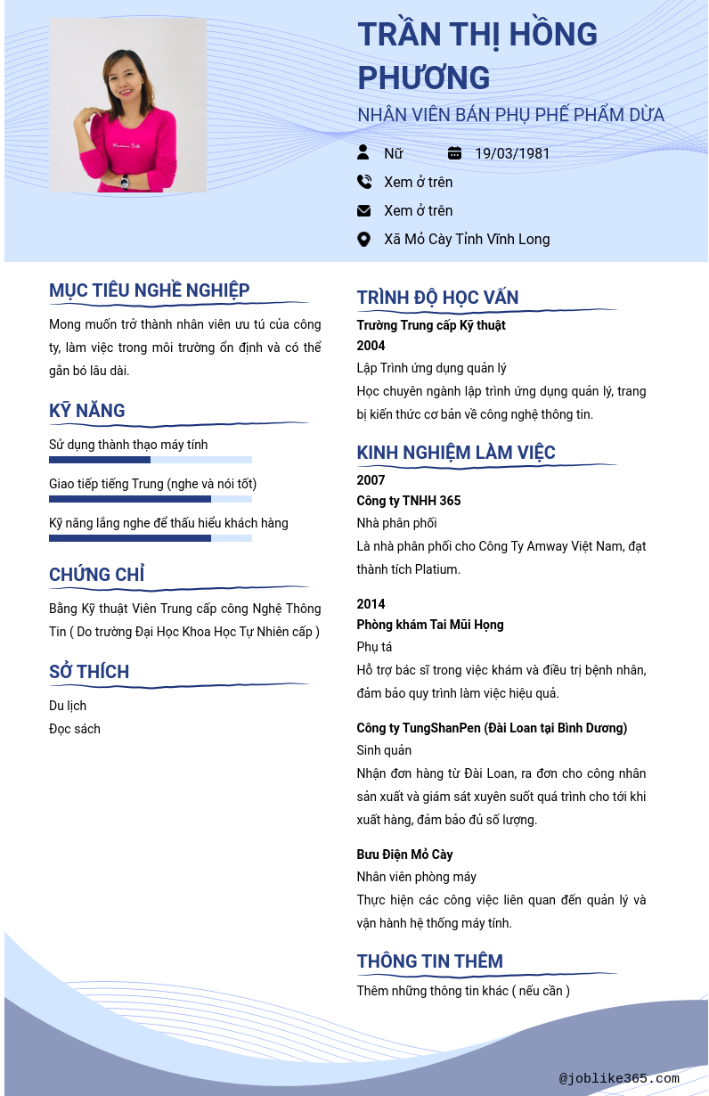Xem hồ sơ ứng viên TRẦN THỊ HỒNG pHƯƠNG cần 2 điểm. Hồ sơ được cập nhật ngày: 07/10/2025