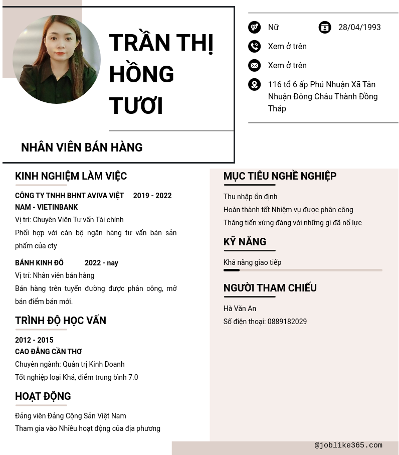 Xem hồ sơ ứng viên Trần Thị Hồng Tươi cần 2 điểm. Hồ sơ được cập nhật ngày: 21/07/2024