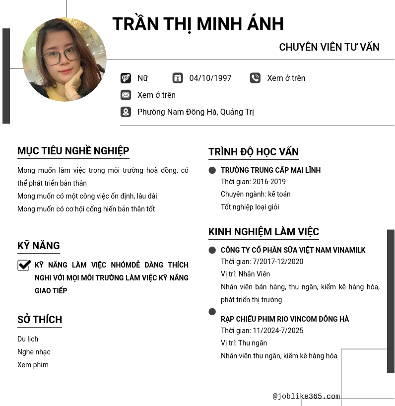 Xem hồ sơ ứng viên Trần Thị Minh Ánh cần 2 điểm. Hồ sơ được cập nhật ngày: 24/11/2025