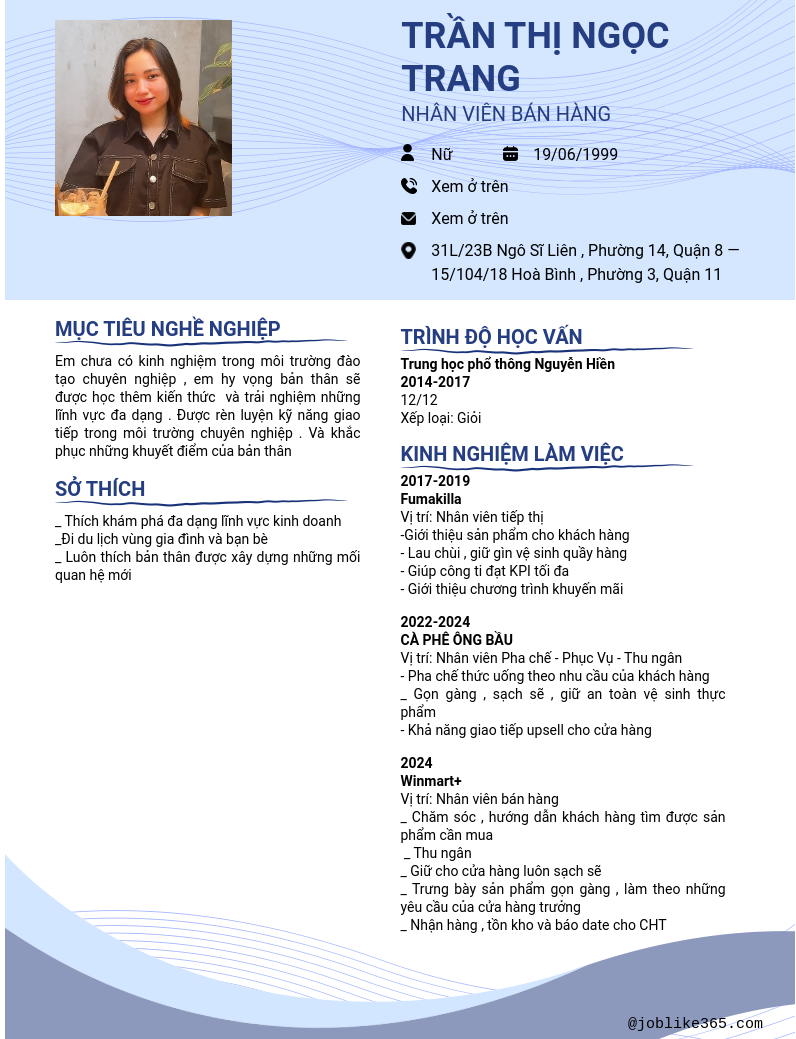Xem hồ sơ ứng viên TRẦN THỊ NGỌC TRANG cần 2 điểm. Hồ sơ được cập nhật ngày: 11/09/2024