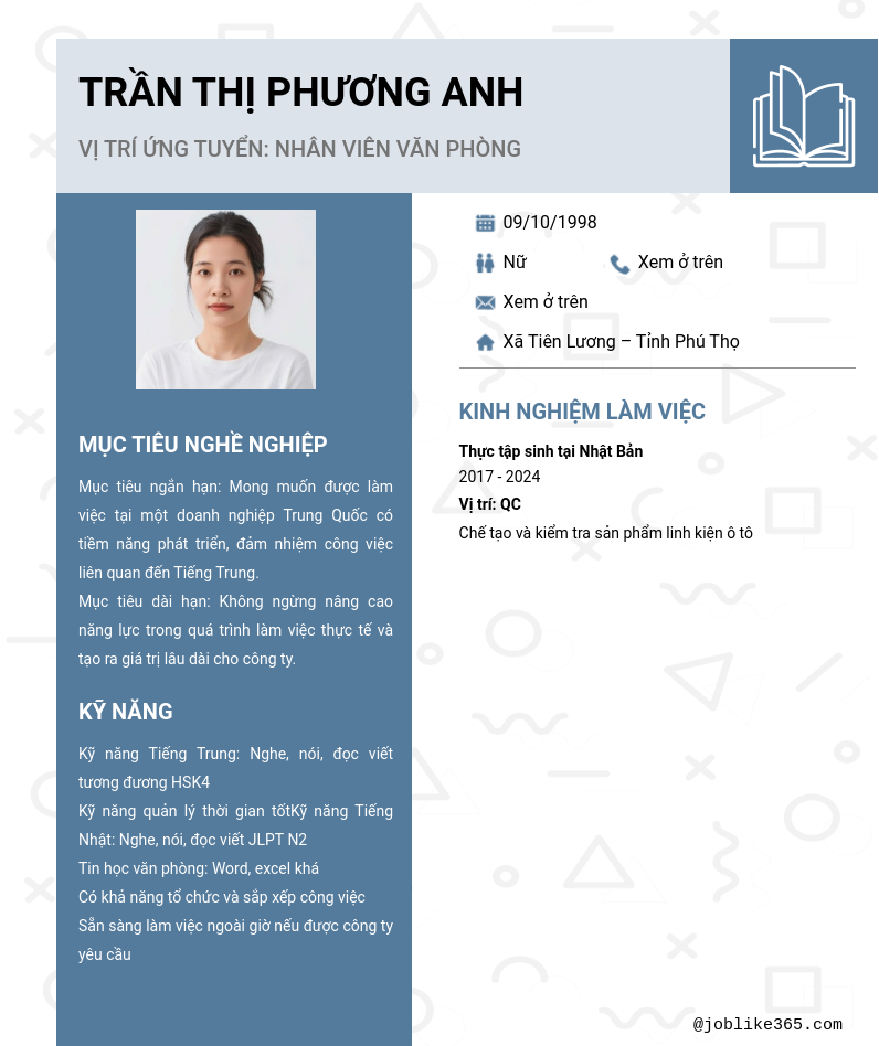 Xem hồ sơ ứng viên TRẦN THỊ PHƯƠNG ANH cần 2 điểm. Hồ sơ được cập nhật ngày: 01/03/2026