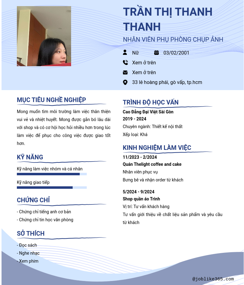 Xem hồ sơ ứng viên Trần Thị Thanh Thanh cần 2 điểm. Hồ sơ được cập nhật ngày: 28/09/2024