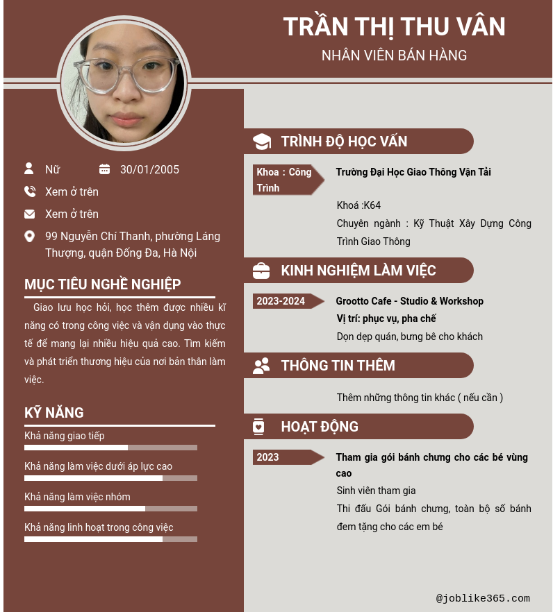 Xem hồ sơ ứng viên TRẦN THỊ THU VÂN cần 2 điểm. Hồ sơ được cập nhật ngày: 12/08/2024