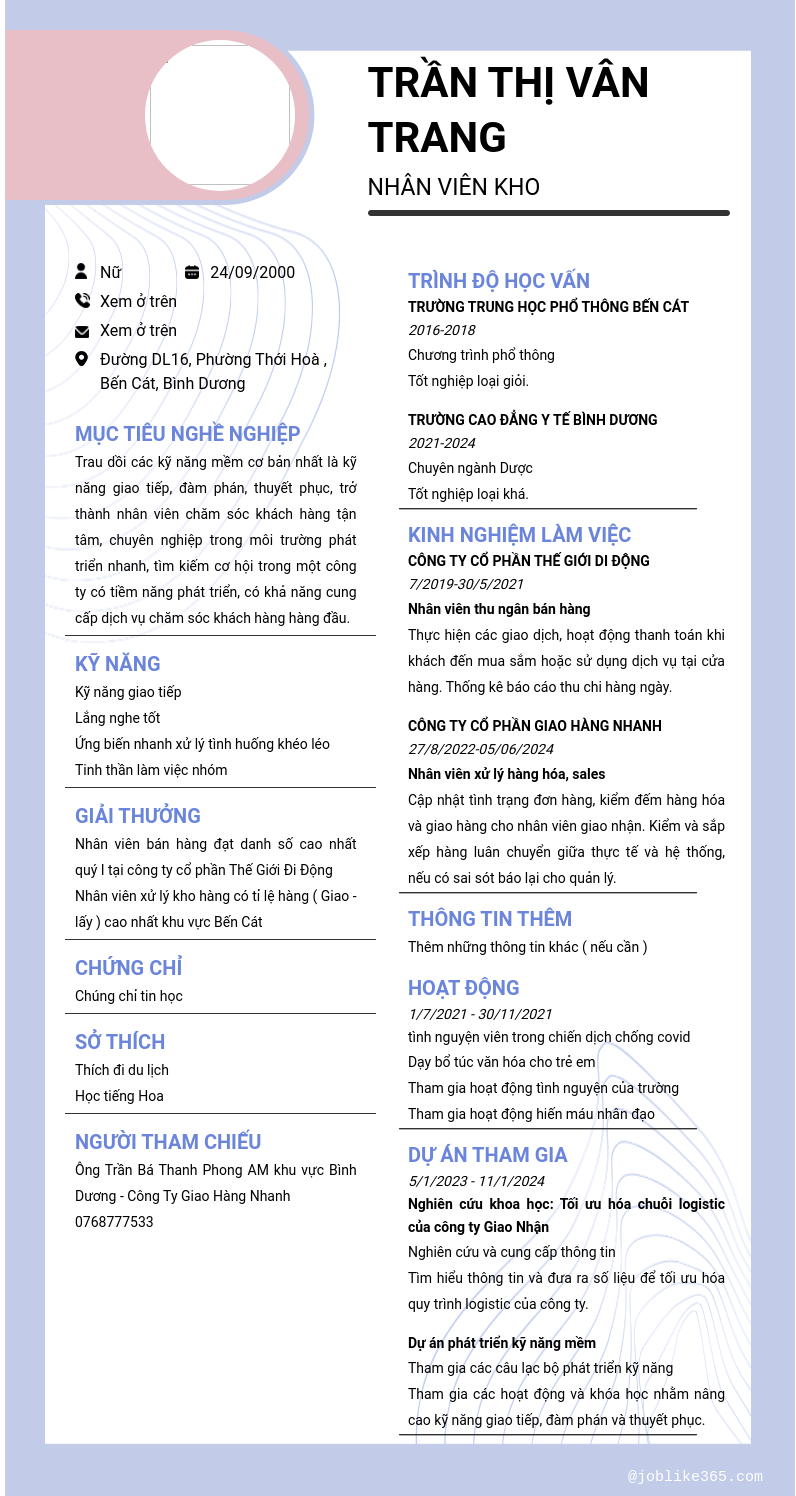 Xem hồ sơ ứng viên TRẦN THỊ VÂN TRANG cần 2 điểm. Hồ sơ được cập nhật ngày: 07/11/2025