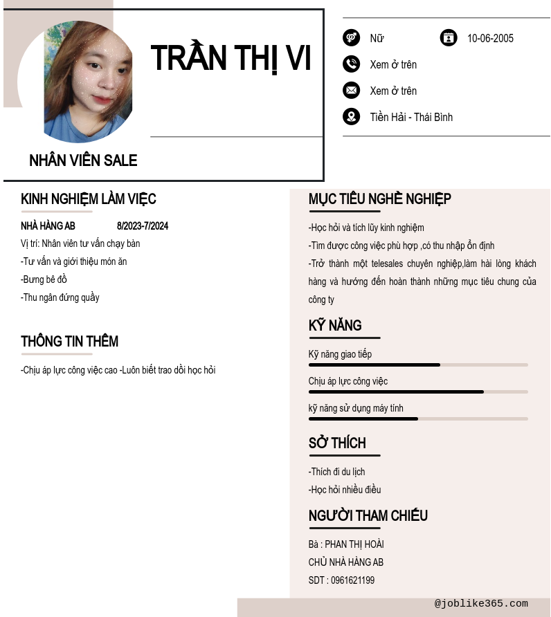 Xem hồ sơ ứng viên TRẦN THỊ VI cần 2 điểm. Hồ sơ được cập nhật ngày: 30/07/2024