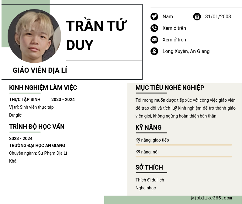 Xem hồ sơ ứng viên Trần Tứ Duy cần 2 điểm. Hồ sơ được cập nhật ngày: 11/11/2024