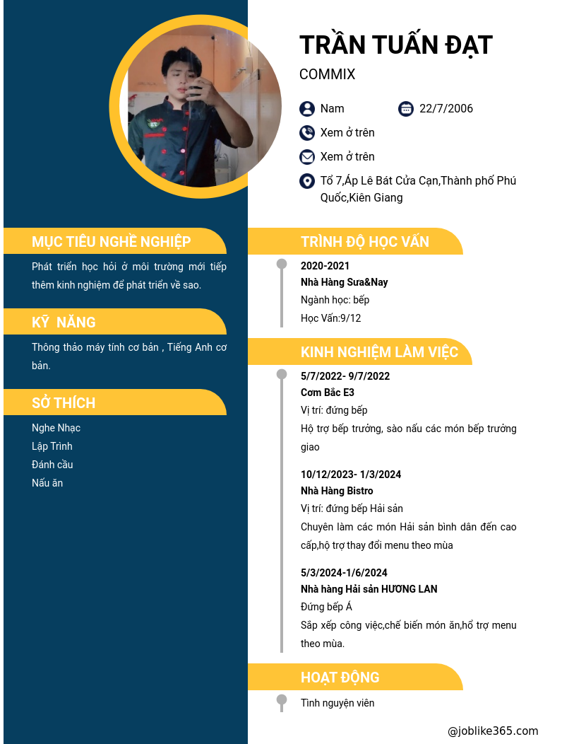 Xem hồ sơ ứng viên TRẦN TUẤN ĐẠT cần 2 điểm. Hồ sơ được cập nhật ngày: 12/10/2024