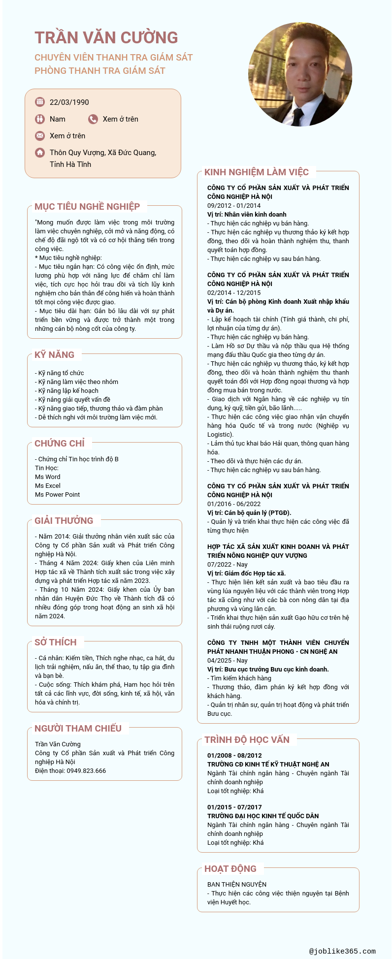 Xem hồ sơ ứng viên Trần văn Cường cần 2 điểm. Hồ sơ được cập nhật ngày: 01/10/2025