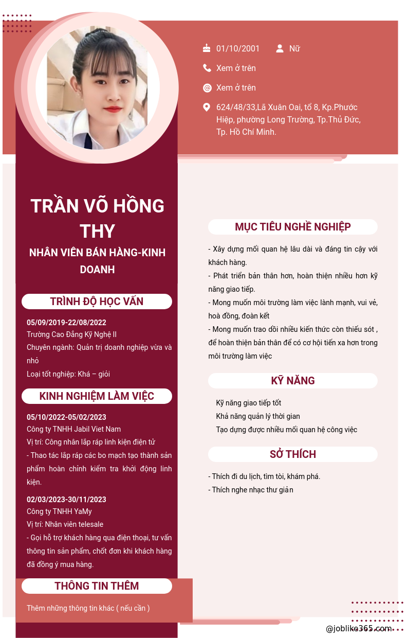 Xem hồ sơ ứng viên TRẦN VÕ HỒNG THY cần 2 điểm. Hồ sơ được cập nhật ngày: 17/06/2024