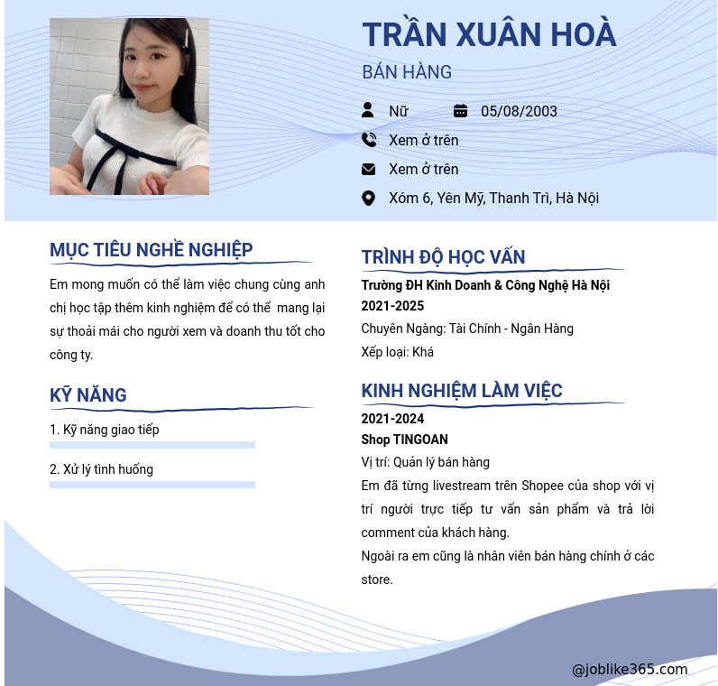 Xem hồ sơ ứng viên TRẦN XUÂN HOÀ cần 2 điểm. Hồ sơ được cập nhật ngày: 02/07/2024