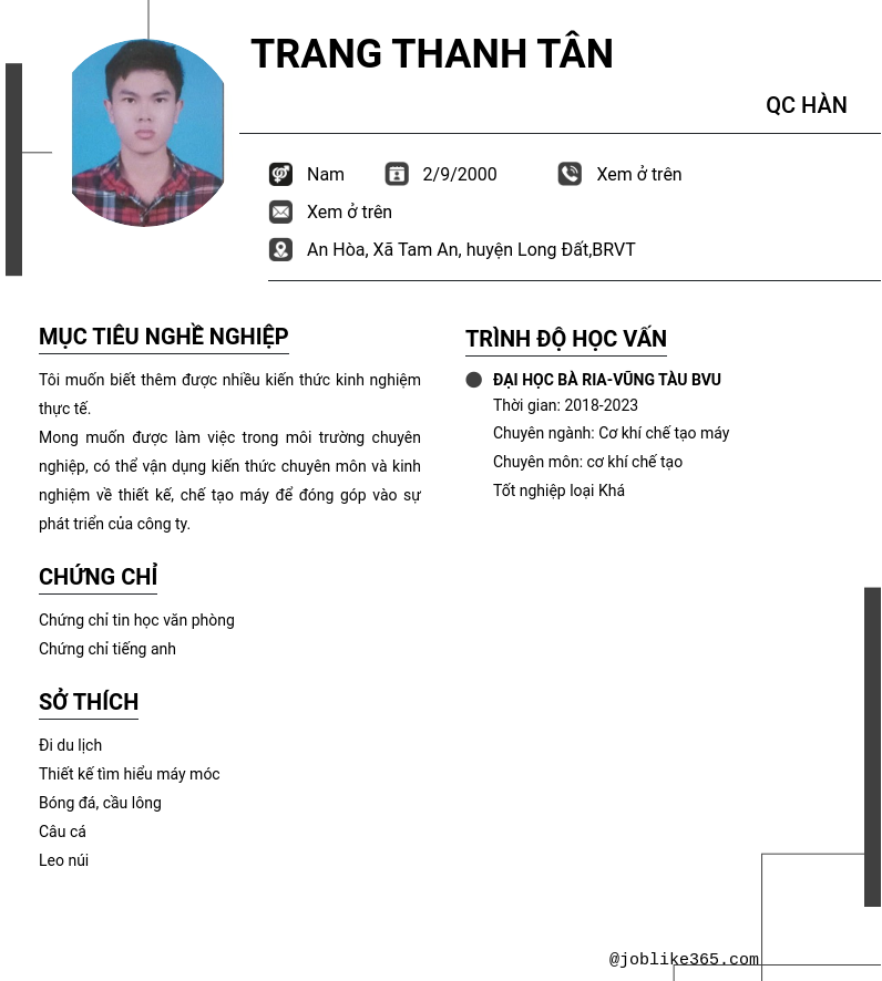 Xem hồ sơ ứng viên Trang Thanh Tân cần 2 điểm. Hồ sơ được cập nhật ngày: 16/06/2025
