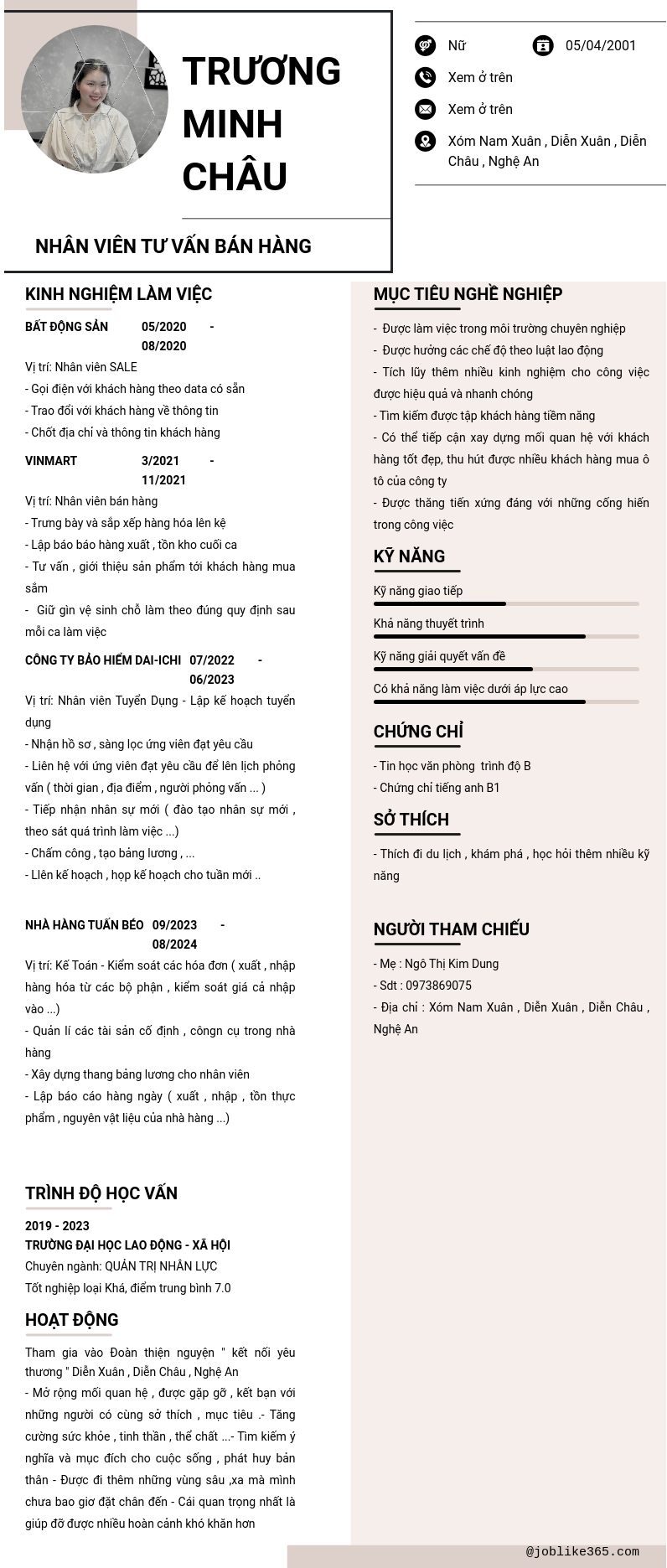 Xem hồ sơ ứng viên TRƯƠNG MINH CHÂU cần 2 điểm. Hồ sơ được cập nhật ngày: 02/11/2024