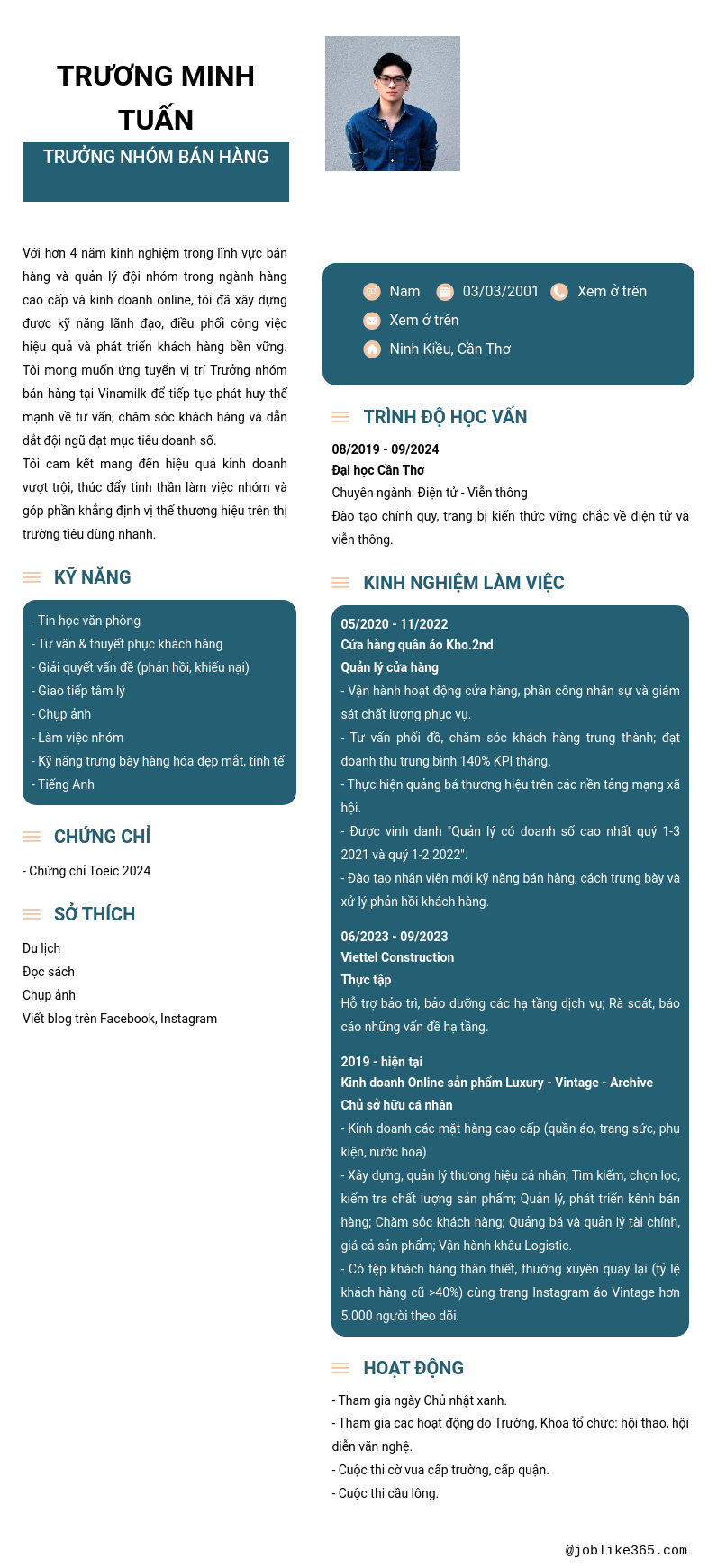 Xem hồ sơ ứng viên TRƯƠNG MINH TUẤN cần 2 điểm. Hồ sơ được cập nhật ngày: 10/09/2025