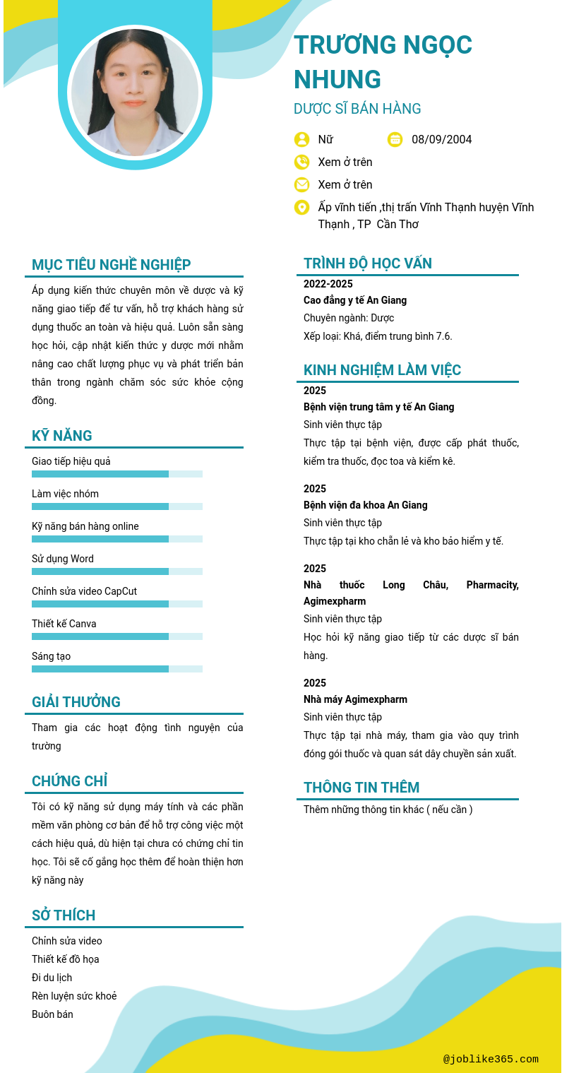 Xem hồ sơ ứng viên Trương Ngọc Nhung cần 2 điểm. Hồ sơ được cập nhật ngày: 04/09/2025
