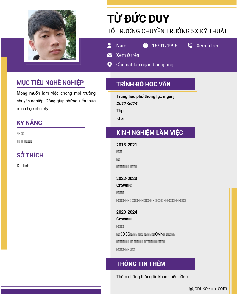 Xem hồ sơ ứng viên TỪ ĐỨC DUY cần 2 điểm. Hồ sơ được cập nhật ngày: 23/05/2024