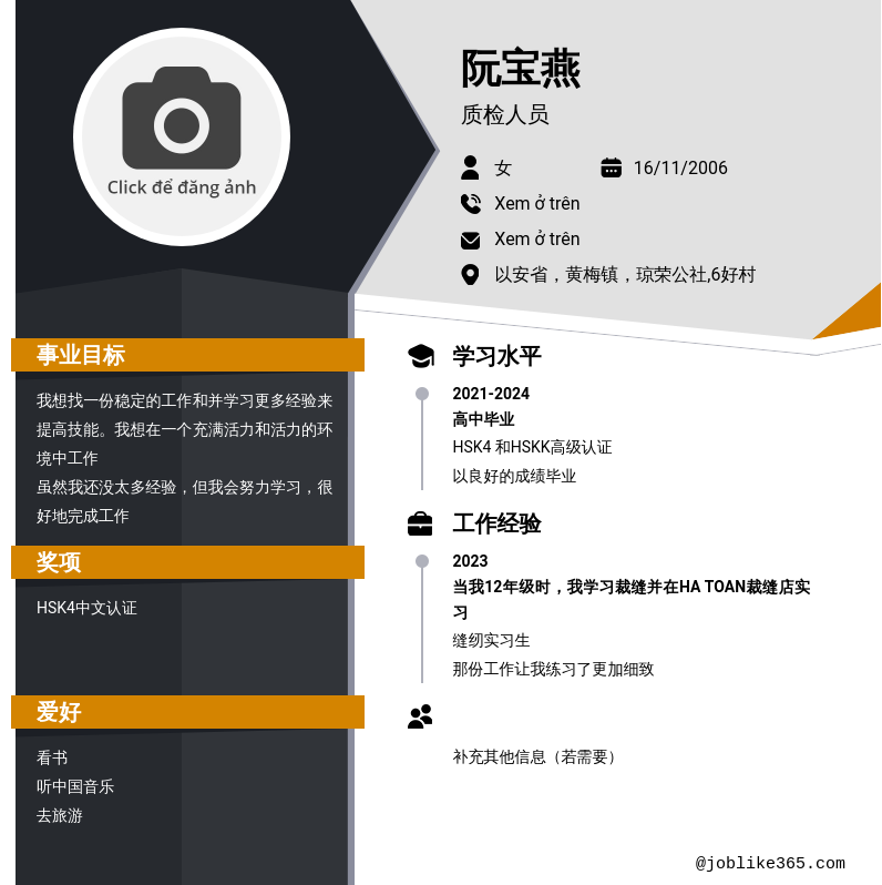 Xem hồ sơ ứng viên 阮宝燕 cần 2 điểm. Hồ sơ được cập nhật ngày: 27/12/2024