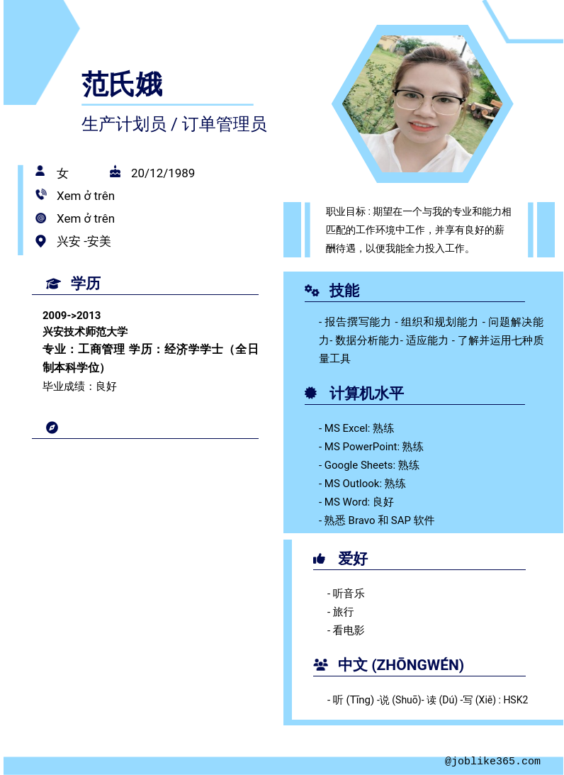 Xem hồ sơ ứng viên 范氏娥 cần 2 điểm. Hồ sơ được cập nhật ngày: 07/10/2025