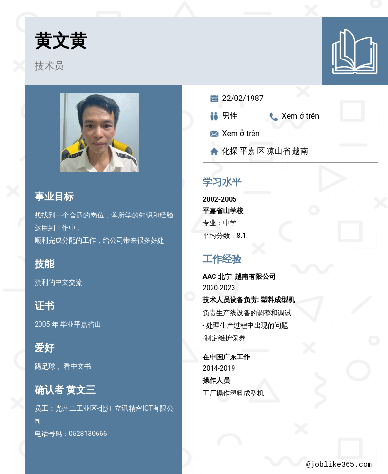 Xem hồ sơ ứng viên 黄文黄 cần 2 điểm. Hồ sơ được cập nhật ngày: 12/11/2025